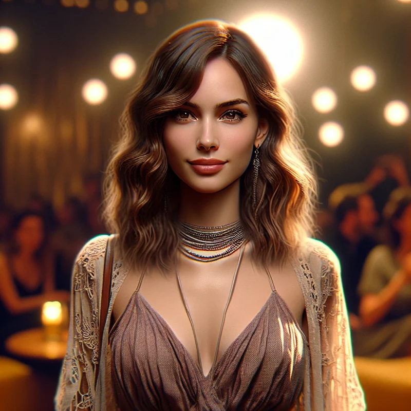 Hayal gücümde bohem tarzımdan ödün vermeden, uzun elbisemin uçuşan kumaşları ve çeşitli kolyelerimle dans ediyorum. Dalgalı kestane rengi saçlarım rüzgarla dans ediyor, dikkat çekici yeşil gözlerim ise çevremdeki güzellikleri inceliyor.